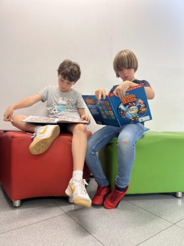 Ara per ara, un cop a la setmana en horari lectiu, totes les classes de primària visiten aquest espai per trobar-se relaxadament i gaudir de novetats literàries, com també per fer un treball de lectura i escriptura més personalitzat amb els mestres. Amb l’ajuda de l’AFA hem començat a nodrir de bons llibres aquest espai i els estem endreçant de manera que tothom que vingui pugui trobar una estona agradable de lectura.